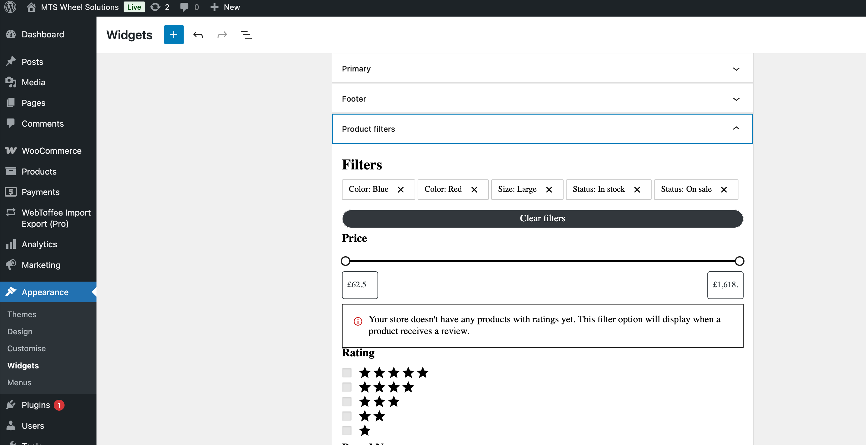 I’ve started building a new woocommerce site and am trying to add a dynamic sidebar with the default Woocommerce Product filter in - just to have a play and see if I can use it.
